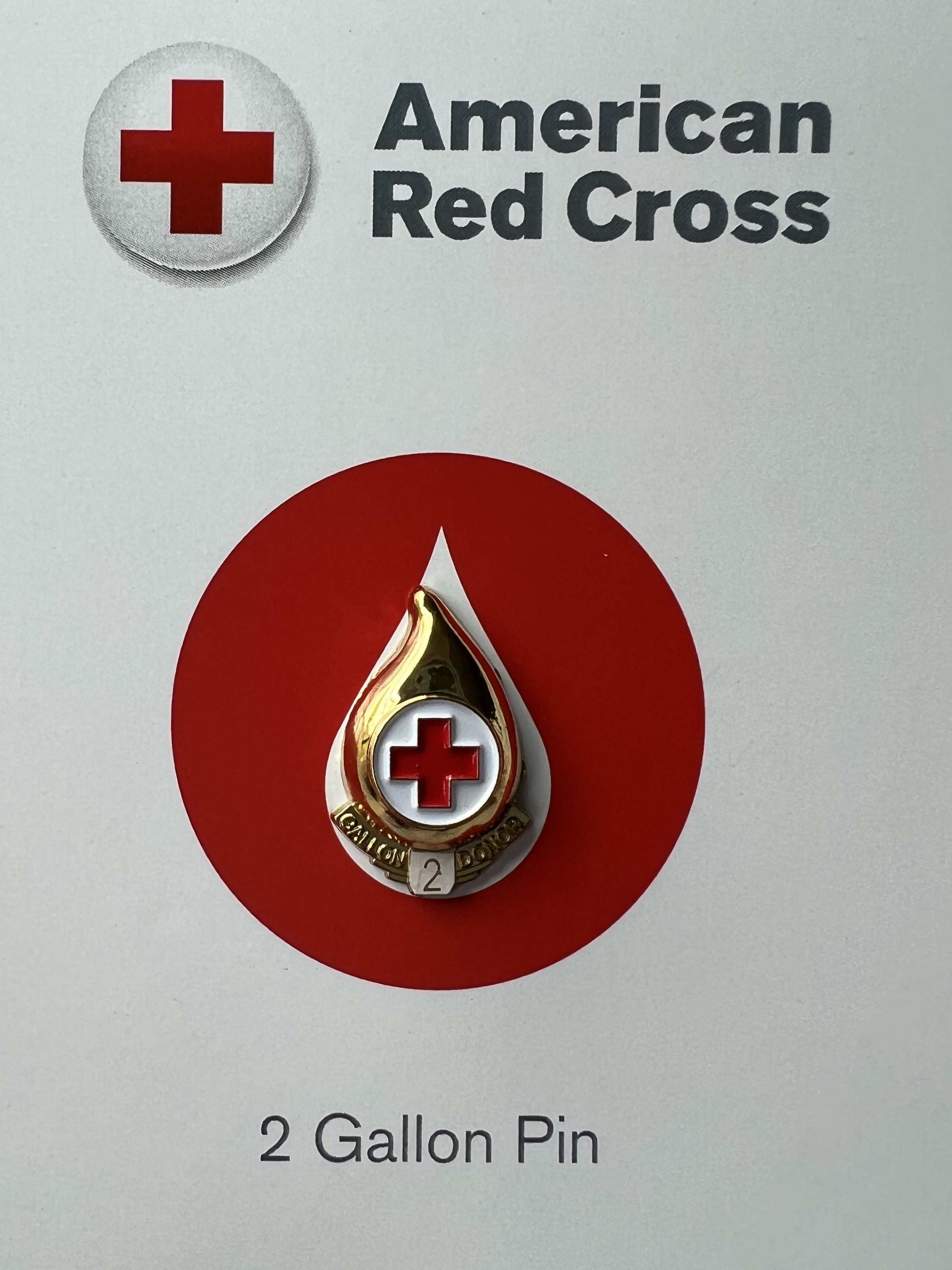 Fittingly enough, this week I received my “2 Gallon” pin from the American Red Cross. Not only did I start donating in 2020, but I kept going as I realized that donating blood was NOT a big deal and could really help people. I am O+, so one time the blood drive workers suggested I consider doing a Power Red donation, as O+ is very helpful and in need. Power Red basically takes just the red blood cells and puts the plasma back in, so you’re donating a double amount of red blood cells each time. I have found that any time I am giving blood (be it at a blood drive or for a doctor’s appointment) if I drink a lot of water they can find a good vein easier. Donating blood is SUPER easy and really helps people, so please consider it if you’re not a regular donor!