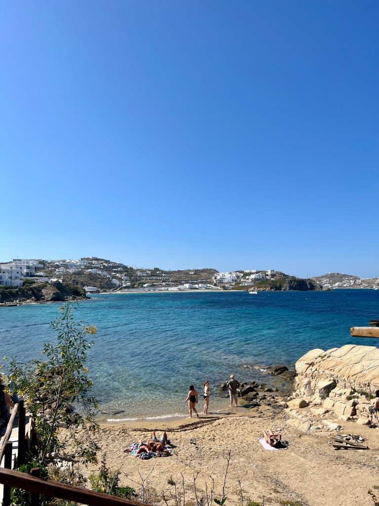 Mykonos is a place I would love to go back to and stay a few days. While we were exploring we found a small beach tucked in between hillsides. There were a few people who were prepared and had their swim suits on. The water was so beautiful – if I’d have had my swim suit the kids would’ve lost me for the day! We watched as one of the ladies in the group swam out and you could see how incredibly clear the water was.