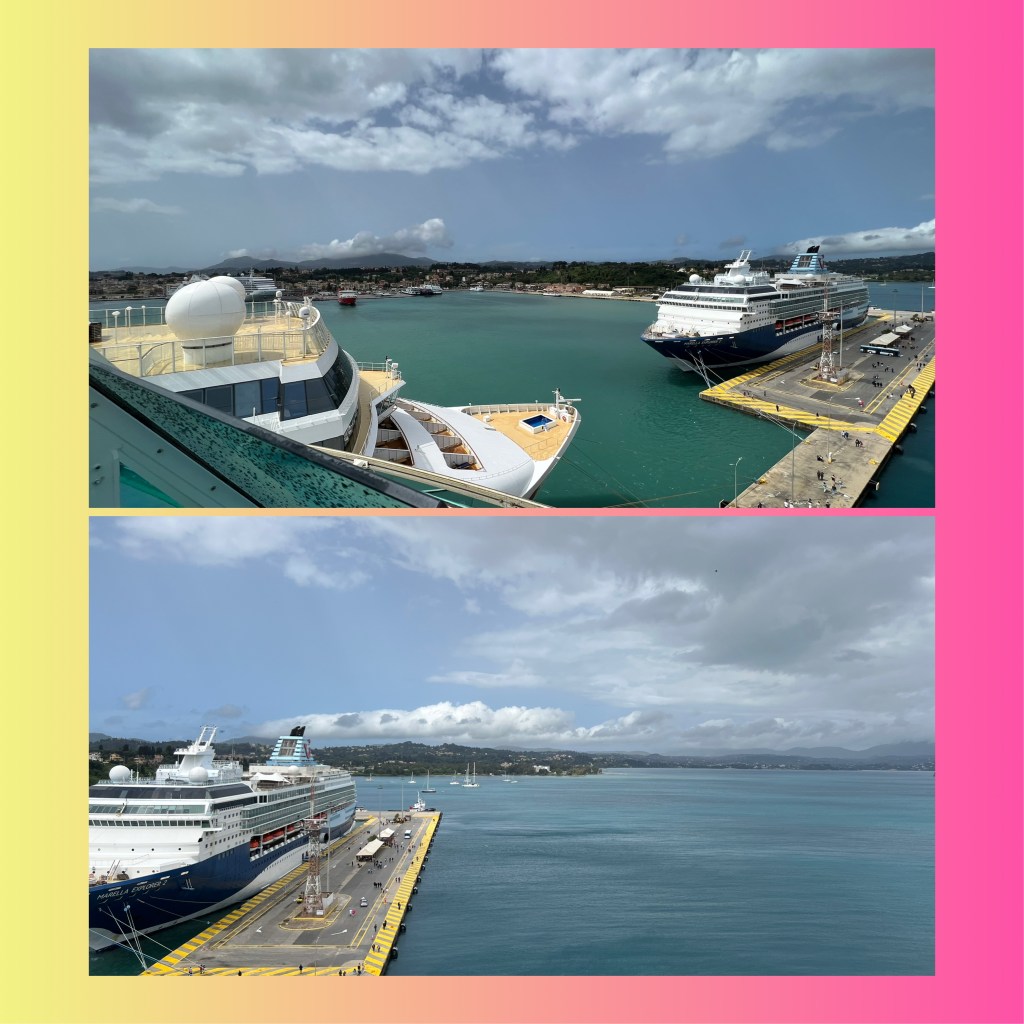 I got back to the ship well before the “last call” for boarding, so I went to the room to see if Drake and Sara were back. No sign of them so I sat on the balcony, enjoying the sun and the activity on the ship next to us. Drake and Sara got back and we compared our days in Corfu. They had gotten rained on but they’re young and adventurous, so they had a good time. As Explorer of the Seas started to leave Corfu, the ship next to us got into full-on party mode by the pool – live band and all! It was so funny being right alongside them. I felt like we should break out into Meatloaf’s “Paradise By The Dashboard Light” with each ship singing a part (If you’re too young for that reference, sorry!).
